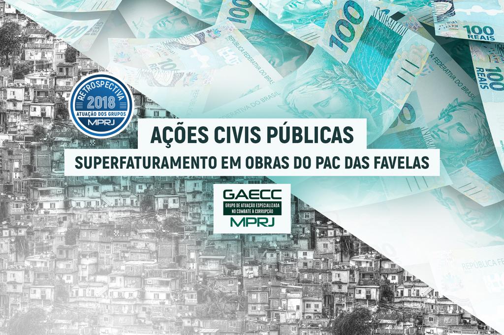 O Ministério Público do Estado do Rio de Janeiro (MPRJ), por meio do Grupo de Atuação Especializada no Combate à Corrupção (GAECC/MPRJ), ajuizou três ações civis públicas (ACPs), com pedido de ressarcimento aos cofres públicos, por atos de improbidade administrativa nas obras do Programa de Aceleração do Crescimento (PAC) nas favelas do Rio de Janeiro, o PAC das Favelas, contra o governador Luiz Fernando Pezão; Hudson Braga, ex-subsecretário Executivo de Obras do RJ; e Ícaro Moreno Júnior, ex-diretor-presidente da Empresa de Obras Públicas do RJ (EMOP). Também foram incluídas nas ações as construtoras Queiróz Galvão, Caenge, Carioca Christiani-Nielsen Engenharia, Andrade Gutierrez, EIT - Empresa Industrial Técnica, CAMTER Construções e Empreendimentos, Odebrecht, OAS e DELTA, de acordo com o contrato em que cada empresa participou, além dos respectivos representantes contratuais. O MPRJ requer a indisponibilidade cautelar de bens dos envolvidos no valor total de R$ 154.191.973,72, referente ao somatório do valor encontrado por sobrepreço e superfaturamento nos três contratos celebrados com o governo estadual.