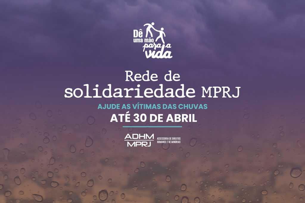 O Ministério Público do Estado do Rio de Janeiro (MPRJ), por meio do Projeto Morte Zero, voltado para a prevenção de desastres ambientais, e da Assessoria de Direitos Humanos e Minorias (ADHM/MPRJ), realizam a campanha Rede de Solidariedade MPRJ, destinada ao recolhimento de donativos para as vítimas das chuvas que atingiram o Rio desde o último dia 9, causando perdas materiais em diversos bairros da capital fluminense, além de mais de um dezena de mortes, em especial devido a deslizamentos e ao desabamento de dois prédios na Muzema, zona Oeste da cidade.