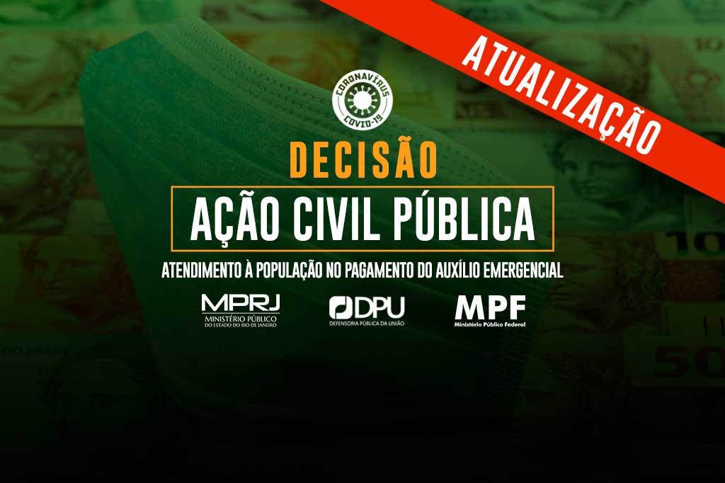 O Ministério Público do Estado do Rio de Janeiro (MPRJ), por meio da Força-Tarefa de Atuação Integrada na Fiscalização das Ações Estaduais e Municipais de Enfrentamento à COVID-19 (FTCOVID-19/MPRJ) e da 4ª Promotoria de Justiça de Tutela Coletiva da Cidadania da Capital, e em conjunto com o Ministério Público Federal (MPF) e a Defensoria Pública da União (DPU), obteve, nesta sexta-feira (08/05), decisão favorável em ação civil pública com pedido de tutela de urgência, ajuizada na última quarta (06/05), em face da Caixa Econômica Federal (CEF), da Empresa de Tecnologia e Informações da Previdência Social (Dataprev), da União e do Estado do Rio.