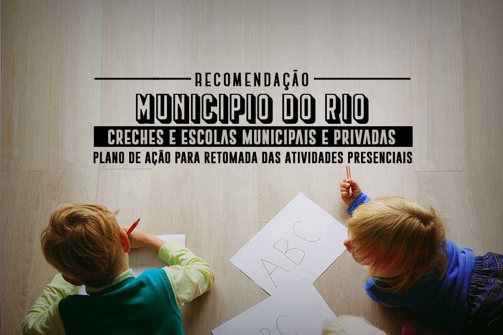 O Ministério Público do Estado do Rio de Janeiro (MPRJ), por meio da 1ª e 3ª Promotorias de Justiça de Tutela Coletiva de Proteção à Educação da Capital, expediu recomendação conjunta para que o Município do Rio apresente, no prazo de 15 dias, plano de ação para retomada das atividades presenciais nas creches e escolas municipais e privadas, com estruturação do calendário escolar para o ano letivo de 2020. Embora solicite informações sobre o plano de retorno às aulas presenciais, o MPRJ reitera, com base em documento elaborado pela Fundação Oswaldo Cruz, que sejam mantidas as medidas restritivas de isolamento na rede municipal de ensino, abstendo-se o município de promover ou autorizar a reabertura das creches e escolas municipais e privadas.