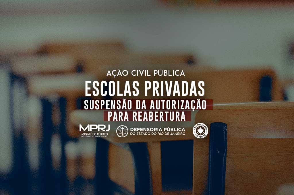 O Ministério Público do Estado do Rio de Janeiro (MPRJ), por meio da 3ª Promotoria de Justiça de Tutela Coletiva de Proteção à Educação da Capital, e a Defensoria Pública do Estado ajuizaram ação civil pública, com pedido de liminar, para suspender os efeitos do decreto do Município do Rio que autoriza a reabertura das escolas privadas a partir de 1º de agosto. A ação aponta que a decisão da Prefeitura traz risco à vida e saúde da coletividade, além de promover desigualdade de acesso à escola.