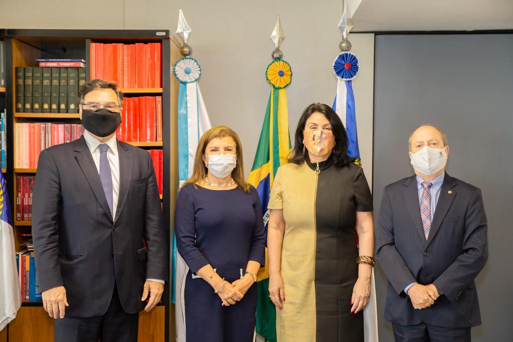 O Ministério Público do Estado do Rio de Janeiro (MPRJ), por meio da Procuradoria-Geral de Justiça, celebrou nesta quinta-feira (08/10), um convênio de cooperação técnica com o MP do Maranhão (MPMA), que permitirá o acesso mútuo a softwares e sistemas para auxílio às atividades institucionais, além do compartilhamento da plataforma digital “MPRJ em Mapas”. O documento foi assinado pelo procurador-geral de Justiça, Eduardo Gussem, e pelo PGJ do MPMA, Eduardo Nicolau. Também estiverem presentes à assinatura do termo, as corregedoras-gerais do MPRJ, procuradora de Justiça Luciana Sapha Silveira, e do MPMA, promotora de Justiça Themis Maria Pacheco de Carvalho.