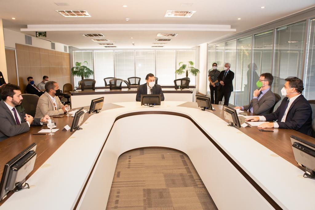 O procurador-geral de Justiça do Estado do Rio de Janeiro, Eduardo Gussem, participou, na tarde desta quinta-feira (29/10), de reunião com o governador em exercício do Estado do Rio de Janeiro, Cláudio Castro. Entre os temas tratados estavam análises para melhorias dos serviços no sistema penitenciário e a digitalização de informações. Na ocasião, também foi apresentado o novo Secretário de Administração Penitenciária (SEAP), coronel da PMERJ Marco Aurélio Santos. O encontro ocorreu na Sala de Reuniões do Secretariado, localizada no prédio-anexo do Palácio das Laranjeiras, sede do governo estadual.