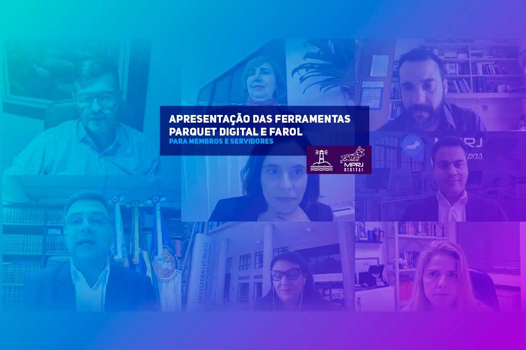 O Ministério Público do Estado do Rio de Janeiro (MPRJ), por meio da Subprocuradoria-Geral de Planejamento Institucional (SUBPLAN/MPRJ), do Instituto de Educação Roberto Bernardes Barroso (IERBB/MPRJ), da Coordenadoria de Análises, Diagnósticos e Geoprocessamento (CADG/MPRJ) e do Centro de Pesquisas (CENPE/MPRJ), apresentou, nesta quinta-feira (05/11), em sessão exclusiva para membros e servidores da casa, as novas ferramentas Parquet Digital/MPRJ e Farol/MPRJ. A apresentação ocorreu em evento virtual, por meio da plataforma Teams.