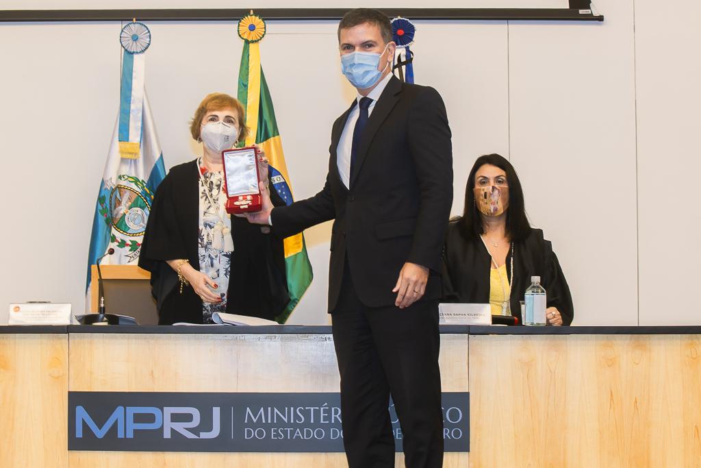 PGJ em exercício, Maria Cristina Tellechea destacou a importância do trabalho desenvolvido pelos agraciados. “A entrega do Colar e da Medalha simboliza a grandeza indissociável à atuação dos que hoje recebem as comendas. A pandemia nos colocou em uma situação antes impensável, tivemos perdas irreparáveis e os mais complexos desafios pela frente durante esse período. E essa situação foi enfrentada com inventividade, aprendizado coletivo e muito diálogo. Adotamos novas formas de trabalho e um olhar mais agudo sobre o papel do MPRJ, de articulação e coordenação entre estado e municípios, além de termos implementado a bem sucedida iniciativa da Força-Tarefa de Atuação Integrada na Fiscalização das Ações Estaduais e Municipais de Enfrentamento à Covid-19 (FTCOVID-19/MPRJ). Por isso, o MPRJ agradece a atuação dos agraciados com o Colar do Mérito e com a Medalha Annibal Frederico de Souza e renova seu compromisso constitucional e de confiança no futuro”, destacou a PGJ em exercício.