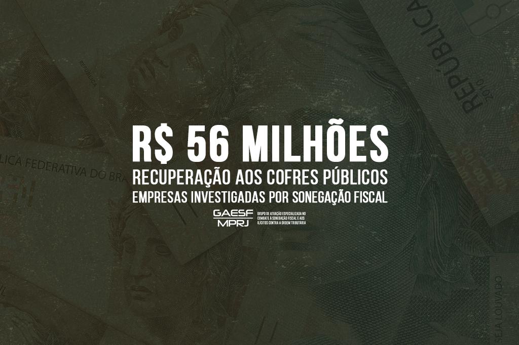 Nesse período, o GAESF também recuperou aos cofres públicos R$ 56 milhões em pagamentos feitos por empresários investigados por sonegação fiscal. Tais valores foram recuperados através de pagamentos feitos pelos sonegadores após o GAESF/MPRJ identificar a fraude tributária, ainda em atuação extrajudicial, sem a necessidade do ajuizamento da ação penal.